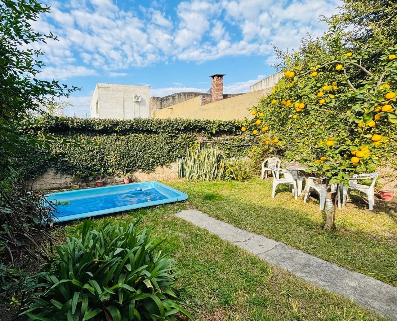 Sector de parquizado, con pequeña pileta de fibra.