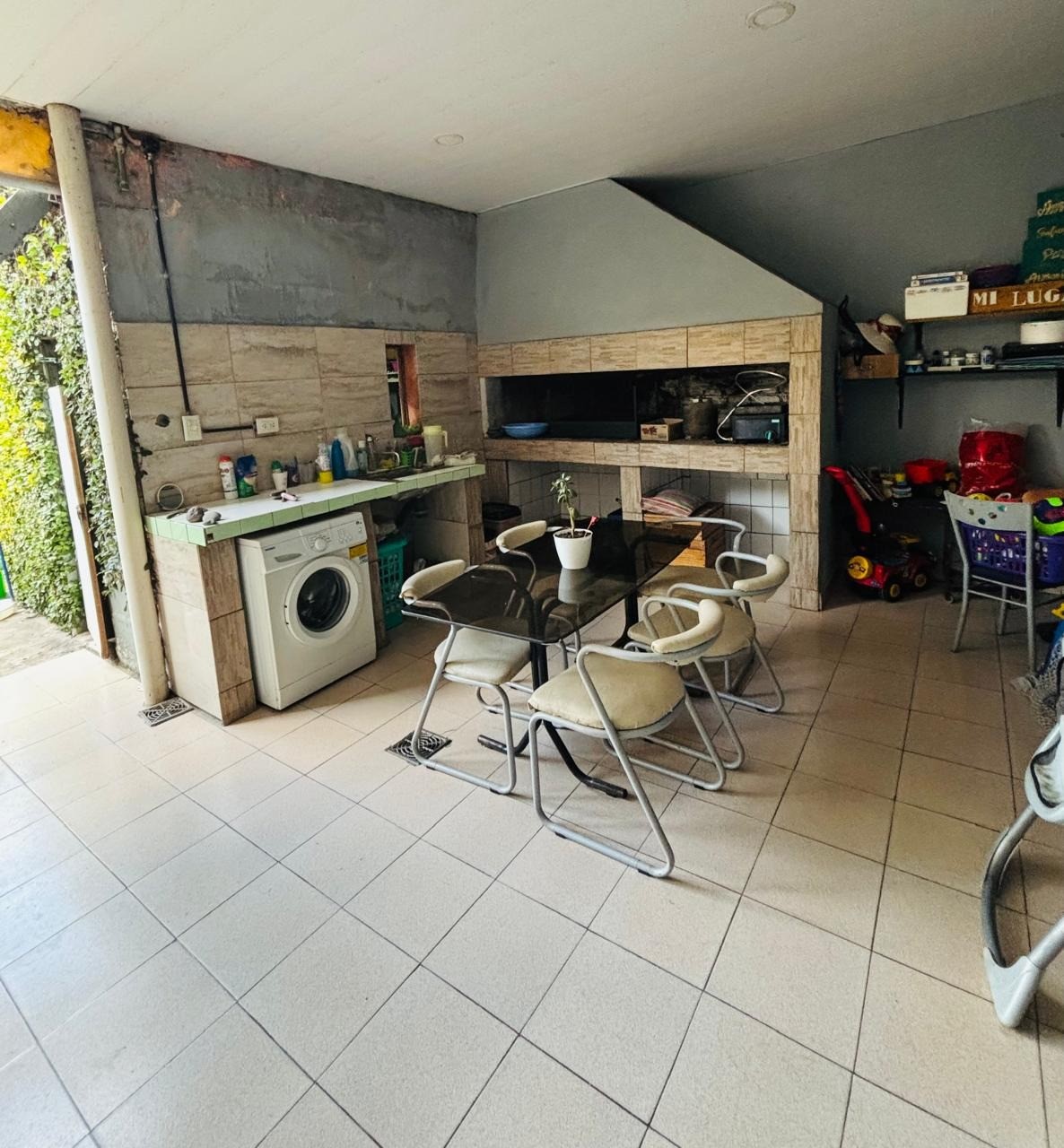 Galería amplia, con parrillero, lavadero y cuarto de guardado.